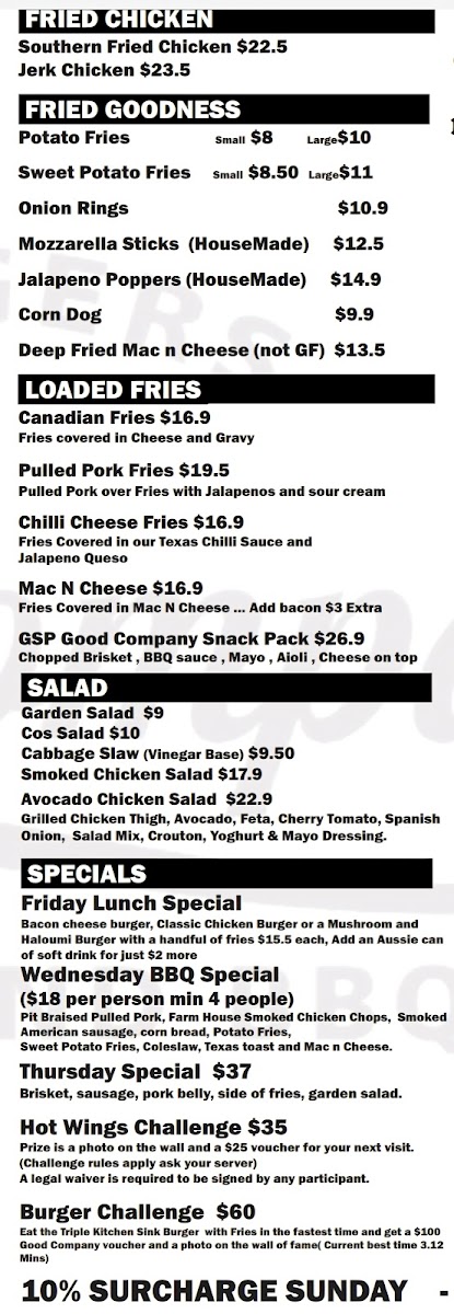 Eat the Triple Kitchen Sink Burger with Fries in the fastest time and get a $100 Good Company voucher and a photo on the wall of fame
